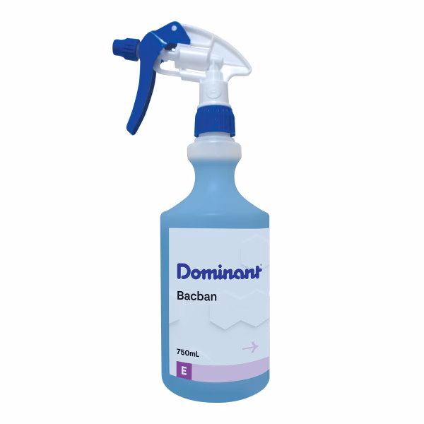 This 750mL dispensing bottle is designed for safe, accurate dilution of Bacban Concentrated Sanitiser. Clearly labelled and lightweight, it ensures