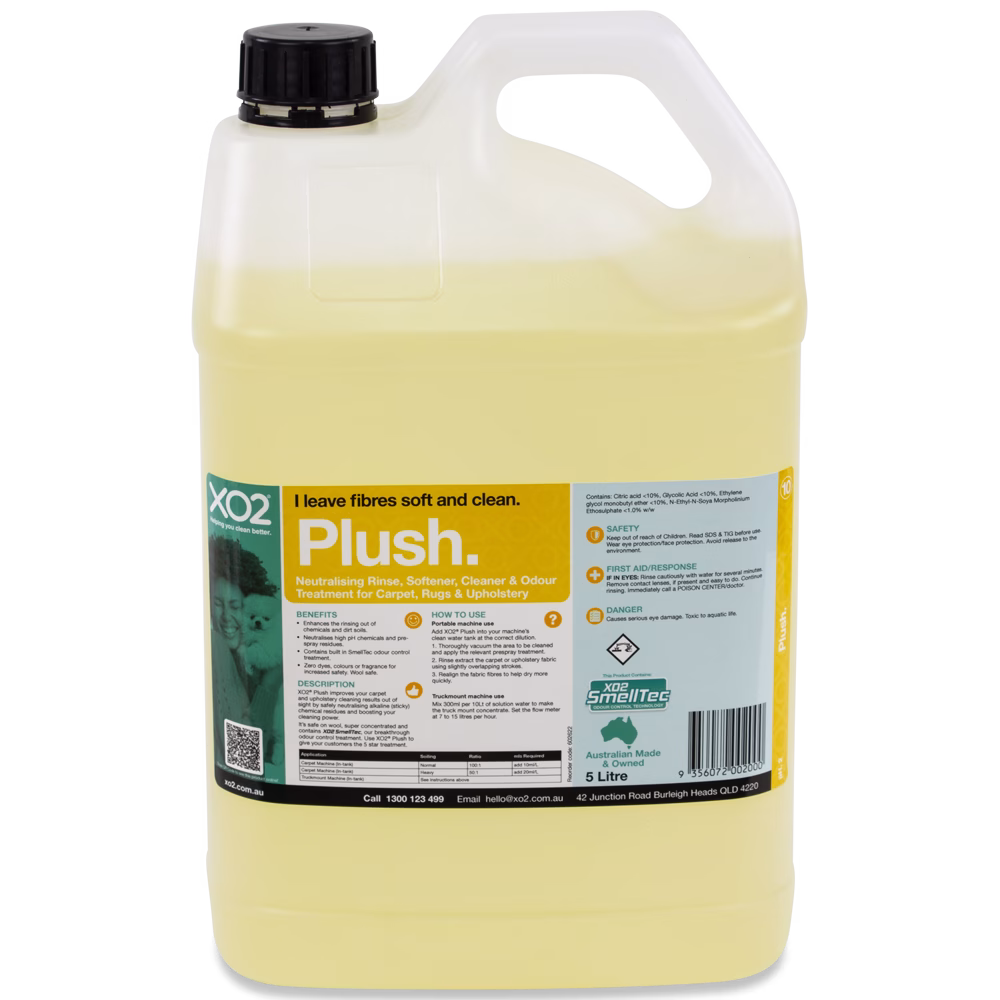 XO2 Plush is an all-in-one treatment for carpets, rugs, and upholstery, combining cleaning, softening, odour neutralising, and fabric care in a single formula. It removes dirt and odours effectively while leaving fabrics soft, fresh, and revitalised. Ideal for homes, offices, and commercial spaces.